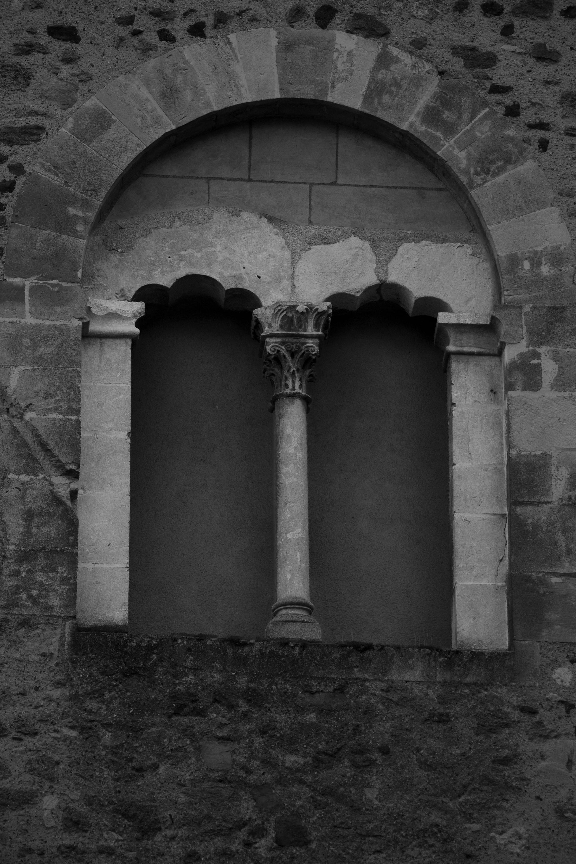 Photo, illustrant un M, prise sur une façade à coté de l'Hôtel de Ville du Mans.